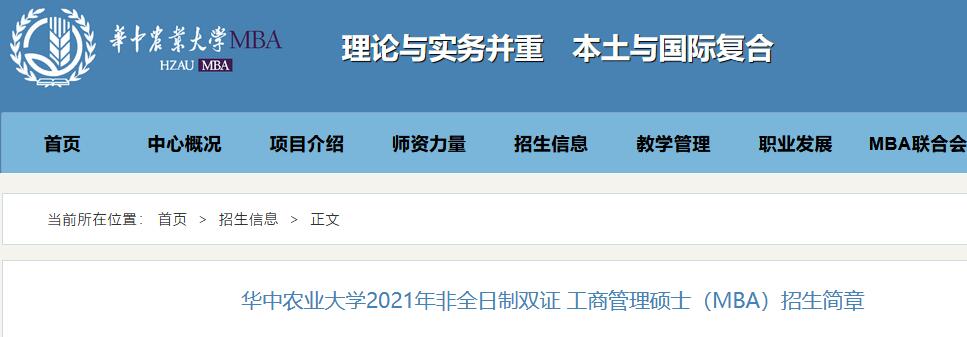 以上就是“2021MBA招生簡章|2021年華中農(nóng)業(yè)大學(xué)MBA招生簡章”的全部內(nèi)容!更多考研信息持續(xù)更新,多多關(guān)注!祝考研順利,馬到成功!