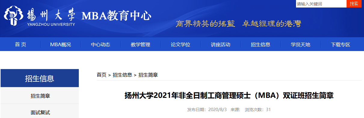 以上就是“2021MBA招生簡章|2021年揚州大學(xué)MBA招生簡章”的全部內(nèi)容!更多考研信息持續(xù)更新,多多關(guān)注!祝考研順利,馬到成功!