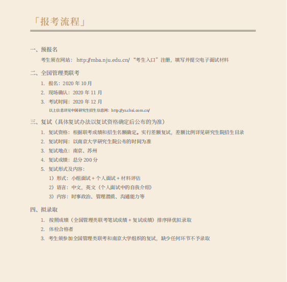 導讀:小編今天為大家帶來了“2021MBA招生簡章:南京大學2021年工商管理碩士(MBA)招生簡章”
