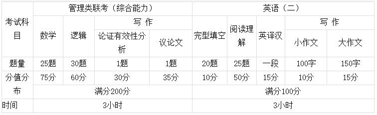 考試時間以教育部公布時間為準。科目:管理類聯考綜合能力、英語二