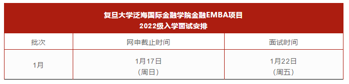 導讀:復旦大學泛海國際金融學院2022級金融EMBA項目(FEMBA)1月面試網上申請,將于2021年1月17日(周日)截止。
